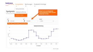 Unter dem Reiter Energiedaten finden Sie den Spotmarktpreis Strom.