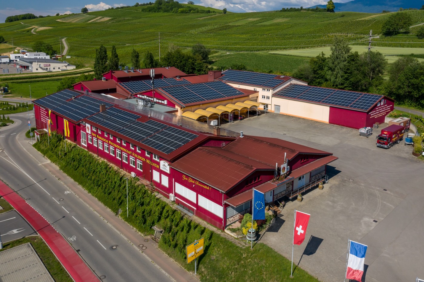 Das Markgräflerland bringt nicht nur hervorragende Weine hervor, auch die Sonne ermöglicht eine gute „Ernte“. Dies hat auch die Erste Markgräfler Winzergenossenschaft Schliengen‐Müllheim eG erkannt und jüngst eine Photovoltaikanlage von beachtlicher Größe installiert. Planung und Bau übernahmen dabei die Spezialisten der badenova‐Tochter badenovaWÄRMEPLUS.