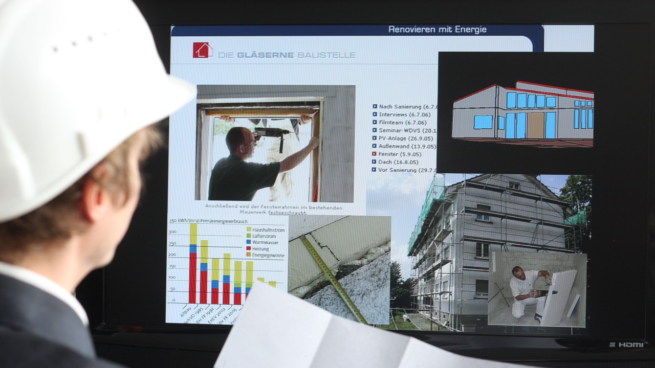 An einem sanierungsbedürftigen Gebäude in Teningen, das Handwerker und Experten in ein energieeffizientes Haus umbauten, richtete die Energieagentur Regio Freiburg gemeinsam mit dem Landkreis Emmendingen deshalb eine ‚gläserne Baustelle’ ein. Während der Bauzeit bot das Projekt Vorträge auf der Baustelle an, danach veranstaltete die Energieagentur mehrtägige Fortbildungsseminare zu Themen wie Energieausweis oder innovative Heiztechnik und erstellte eine Filmdokumentation auf DVD. Gleichzeitig informiert die projekteigene Webseite über die Fortschritte. Interessierte finden dort auch Links und Literatur zum Thema energieeffizient Sanieren sowie eine Liste mit Energieberatern aus der Region.