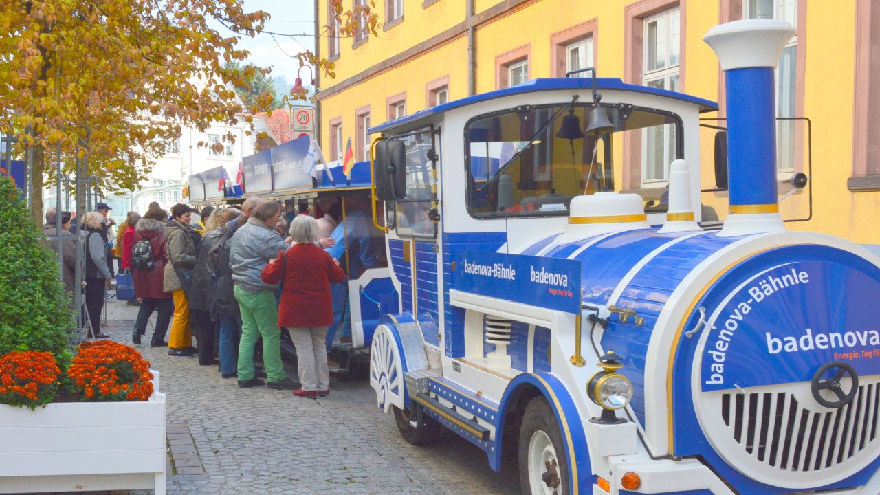 Wir unterstützen mit unserem badenova Bähnle u.a. das Weinfest Kaiserstuhl & Tuniberg in Breisach. Das Bähnle steht den Besuchern als kostenloser Shuttle bereit.